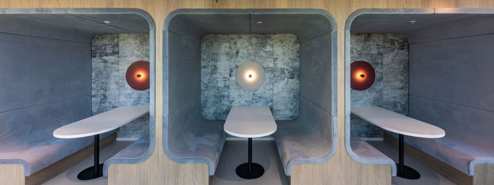 Jsou pohodlné, útulné a technicky dobře vybavené – najdete v nich například obrazovky na prezentace, připojení pro videohovory nebo dostatek zásuvek pro připojení elektroniky. Uvnitř vládne příjemná akustika, která pomáhá soustředění, aniž by bylo nutné se izolovat úplně.