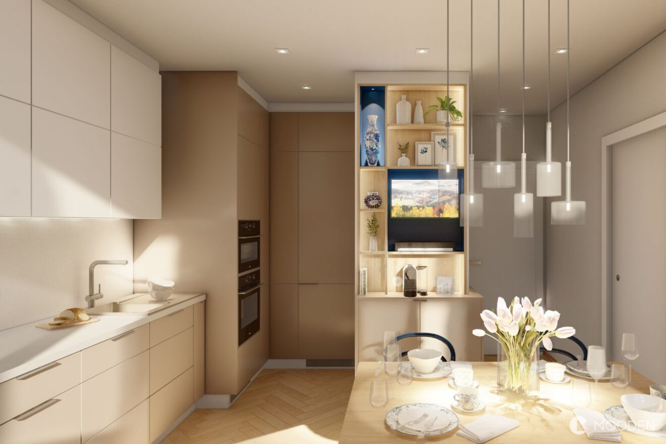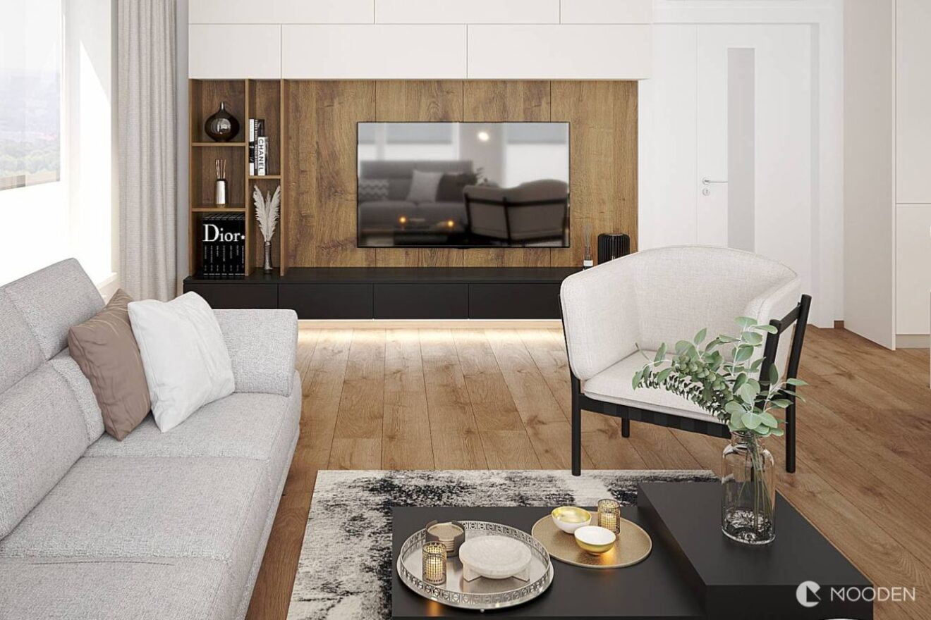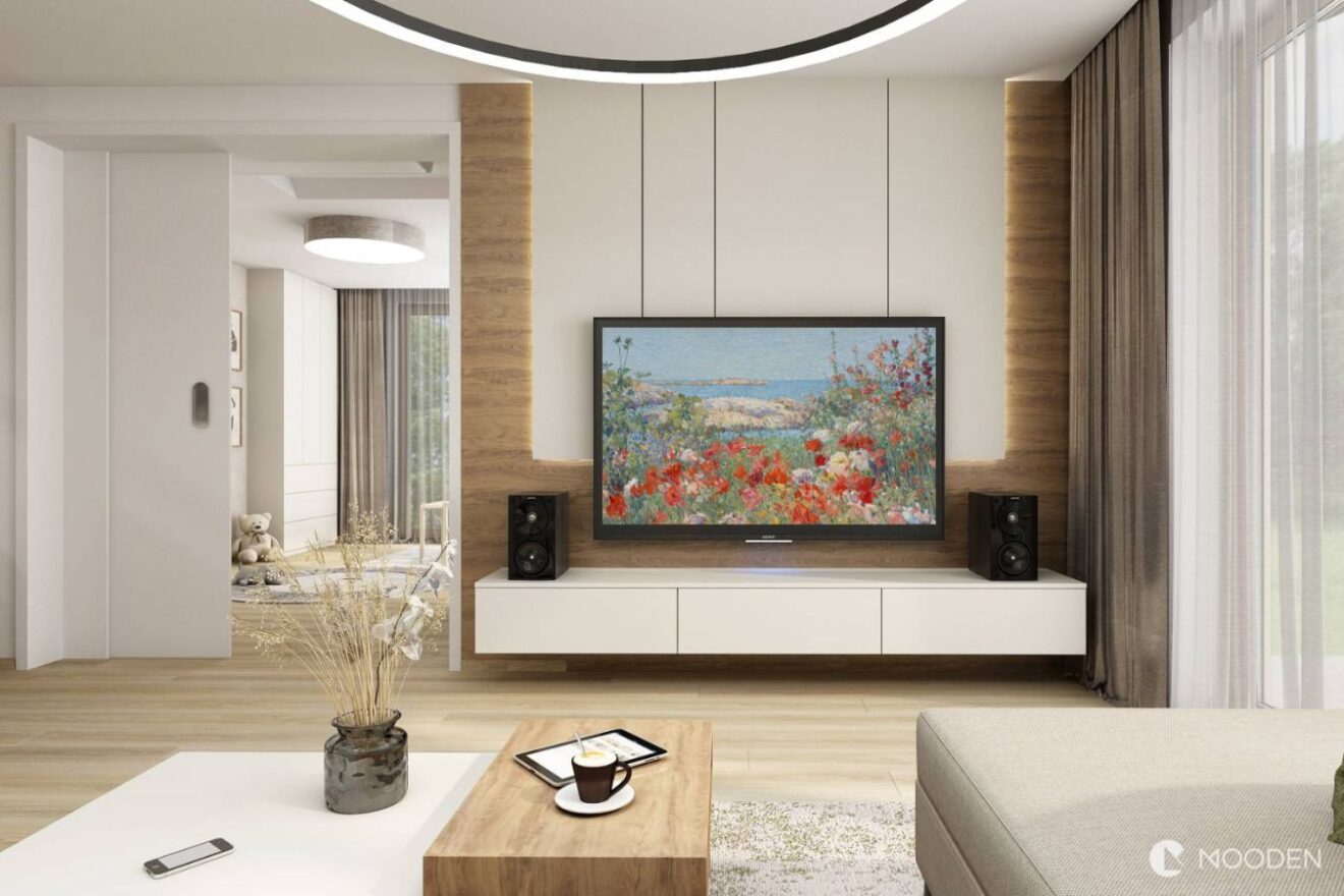 Pokud chcete dosáhnout minimalistického a elegantního vzhledu, nechte si zabudovat televizi přímo do nábytku, aby s ním dokonale splynula. Při plánování nového obývacího pokoje nebo jeho rekonstrukci můžete také vytvořit speciální výklenek ve zdi, který bude mít přesné rozměry vaší televize. Ta pak bude v jedné rovině se stěnou a bude působit čistě a minimalisticky.