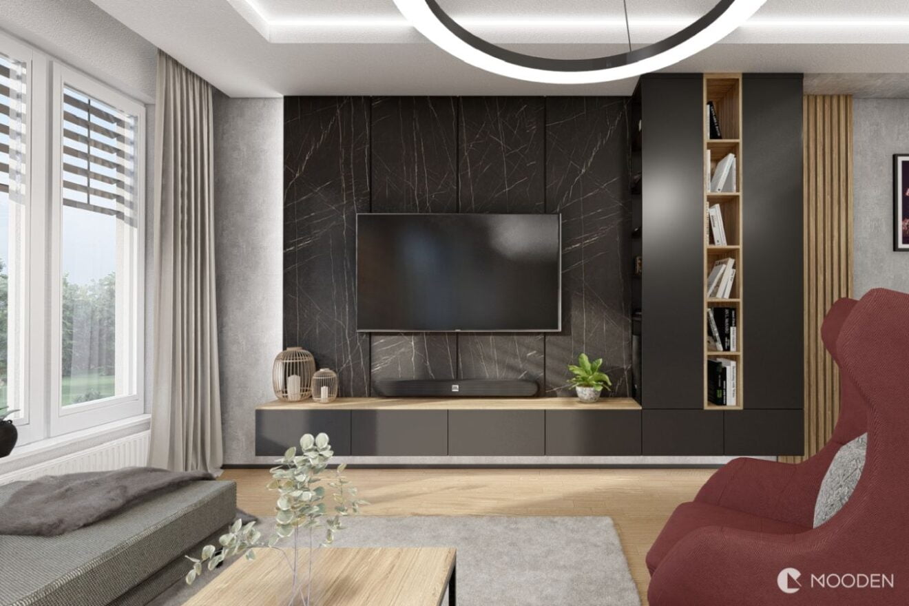 Jednoduchým a účinným způsobem, jak nenápadně začlenit televizi do interiéru, je sladit barvu stěny s barvou televize. Tímto trikem dosáhnete toho, že obrazovka nebude na první pohled v místnosti vyčnívat a splyne s okolím. Například tmavě šedá nebo černá stěna může vytvořit elegantní a moderní vzhled, který televizi vizuálně potlačí a nechá vyniknout ostatní dekorativní prvky místnosti. Stejně tak lze použít i jiné barevné kombinace, které budou ladit s vaším interiérem, ať už jde o přírodní tóny, pastelové barvy nebo výrazné odstíny. Tento jednoduchý designový trik nejen že televizi nenápadně začlení, ale zároveň dodá místnosti ucelený a harmonický vzhled.