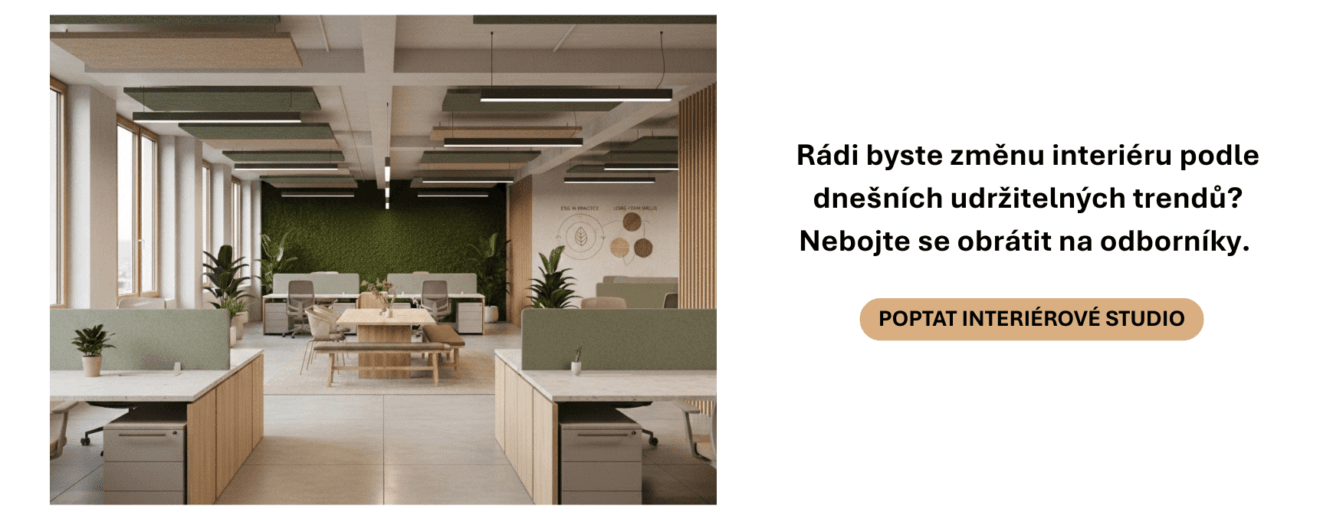 Udržitelnost v interiéru není styl ani krátkodobý trend. Je to způsob uvažování, který firmám pomáhá dělat promyšlenější rozhodnutí – dnes i v budoucnu. Rozhodnutí, která respektují lidi, prostor i čas.