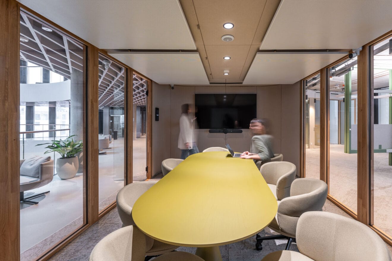 Jedním z praktických nástrojů, jak v otevřených kancelářích oddělit pracovní režimy bez stavebních zásahů, jsou samostatné modulární místnosti. Ty umožňují rychle vytvořit prostor pro schůzky, online hovory nebo soustředěnou práci a zároveň zachovat flexibilitu dispozice. Dobrým příkladem jsou meeting roomy, například modulární místnosti ISLA firmy Dřevodílo, které lze do interiéru vložit bez úprav stavby a v případě změny provozu je opět přemístit. Pro workspace představují kompromis mezi open-space a uzavřenou kanceláří — poskytují akustické soukromí, aniž by prostor ztratil svou variabilitu.